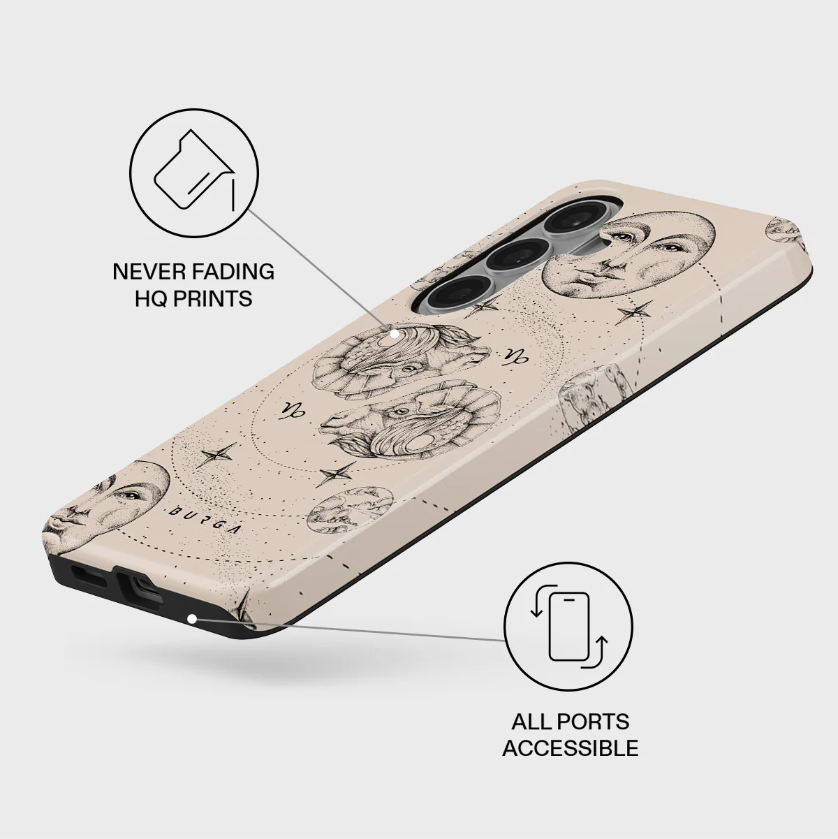 You are ambitious and hardworking, steady and solid, and you work hard to be the best at what you do, and so do we! Our Capricorn Samsung Galaxy S26 phone case combines the little details of your sign while ensuring that your phone is safe and sound through your journey of reaching the stars.