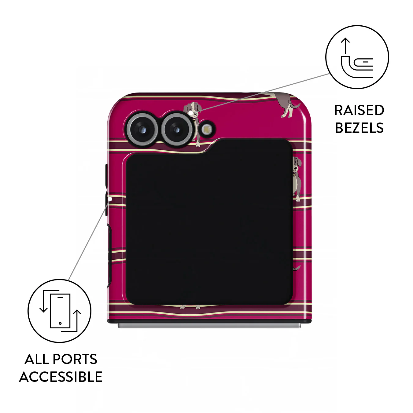This Samsung Galaxy Z Flip 7 FE phone case design is what it feels like to wait for your promotion while your boss reposts hustle quotes on LinkedIn. And yes, these doggos are judging your life choices.